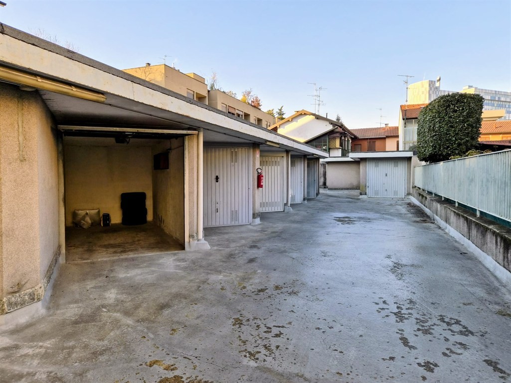 Monza - via Paganini 25, box con serranda automatica, al piano terra, le cui dimensioni sono di circa 4,96 X 2,42 metri. Il cancello di ingresso alle autorimesse è ampio, anch'esso elettrico ed azionabile tramite telecomando, lo spazio di manovra è comodo per agevolare l'ingresso e l'uscita dal box. Le spese condominiali annue sono contenute.