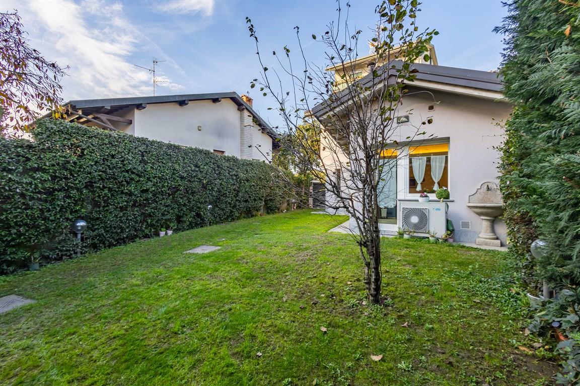 Monza, San Biagio, in posizione di assolta tranquillità, adiecente il centro cittadino, proponiamo una esclusiva villetta, recentemente ristrutturata con elevati criteri di efficienza energietica, classe A1, e di primaria qualità dei materiali di rifinitura. L'immobile è dotato di isolamento termico delle pareti e del tetto, impianto solare, impianto di riscadamento a pavimento, impianto di condizionamento dell'aria, giardino con pavimento ecologico drenante e impianto di irrigazione. L'ambiente è molto accogliente, anche per la presenza di arredi su misura, di elevata qualità, compresi nella vendita. L'abitazione è composta al piano terrà dal soggiorno con cucina a vista, affacciato con ampie vetrate sul giardino, molto suggestivo con l'illuminazione serale. Sempre al piano terra abbiamo un bagno e la lavanedria. Al primo piano, collegato con una comoda scala, troviamo due camere da letto, un bagno, e un grazioso terrazzino.